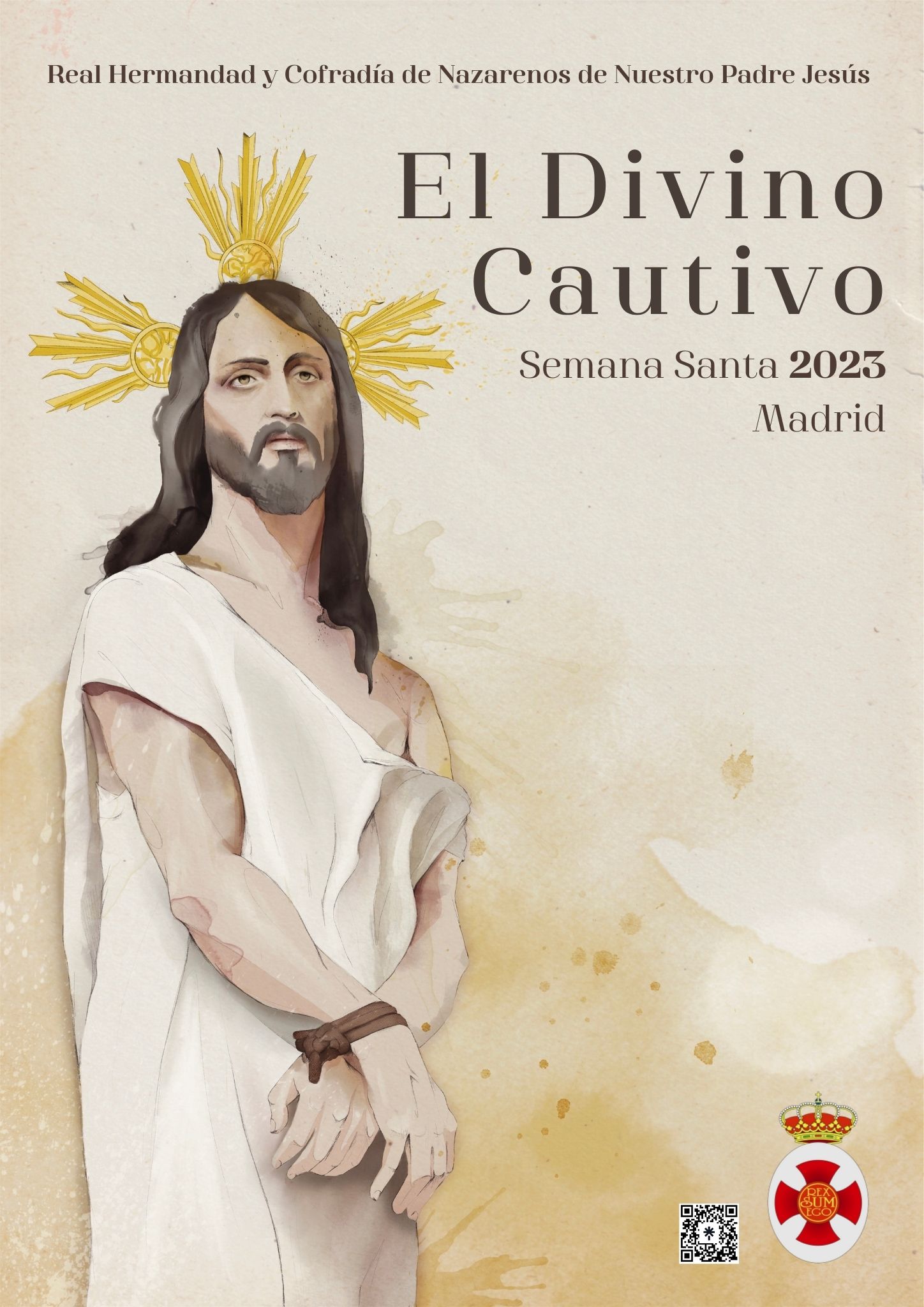 Hacemos público el cartel anunciador de la Semana Santa 2023. Se trata de una ilustración de nuestro Titular, el Divino Cautivo, realizado mediante la técnica de la acuarela digital, obra de D.ª Isabel María Álvarez Fernández.